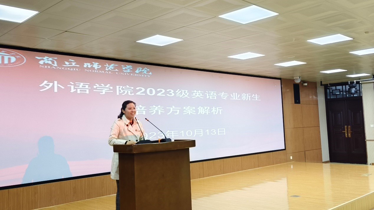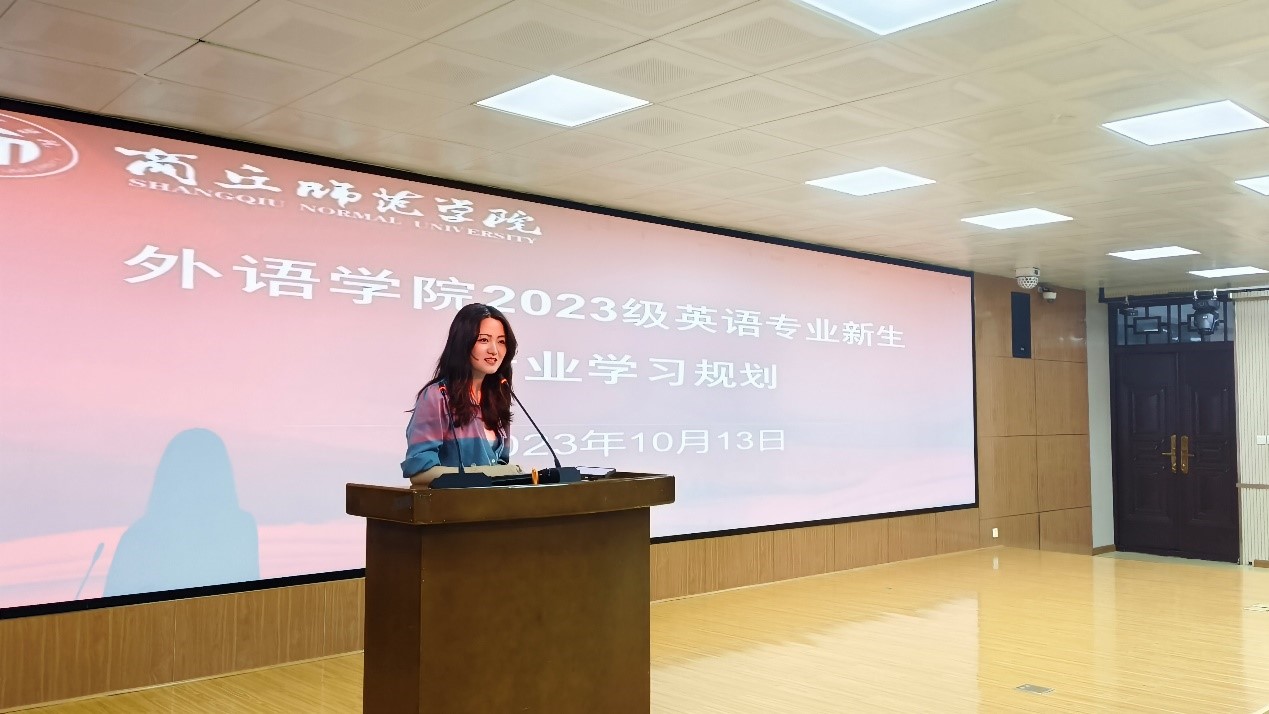 林富丽老师就英语专业人才培养方案、学业导师制、职业资格考试、学科竞赛等分别向新生作了细致解读,引导新生科学规划老员工活,努力学习,不断探索,努力成为具有家国情怀、全球视野、专业本领的复合型人才。