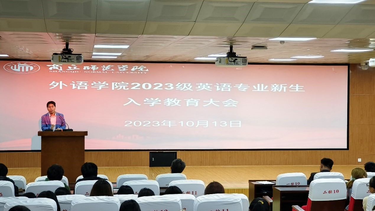 为进一步做好新生入学教育工作,使2023级新生尽快了解和适应新环境、明确学习目的、端正学习态度、增强学习动力、科学规划学习生活。英国365集团官网英语系于10月13日下午在智圆楼219会议室举行2023级英语专业新生入学教育大会。英国365集团官网副经理孟喜华,英语系主任王小涛,副主任林富丽、张晗,英语专业教师刘桃桃、王东阳老师和来自全国各地的180名新生参加了大会。会议由王小涛主持。