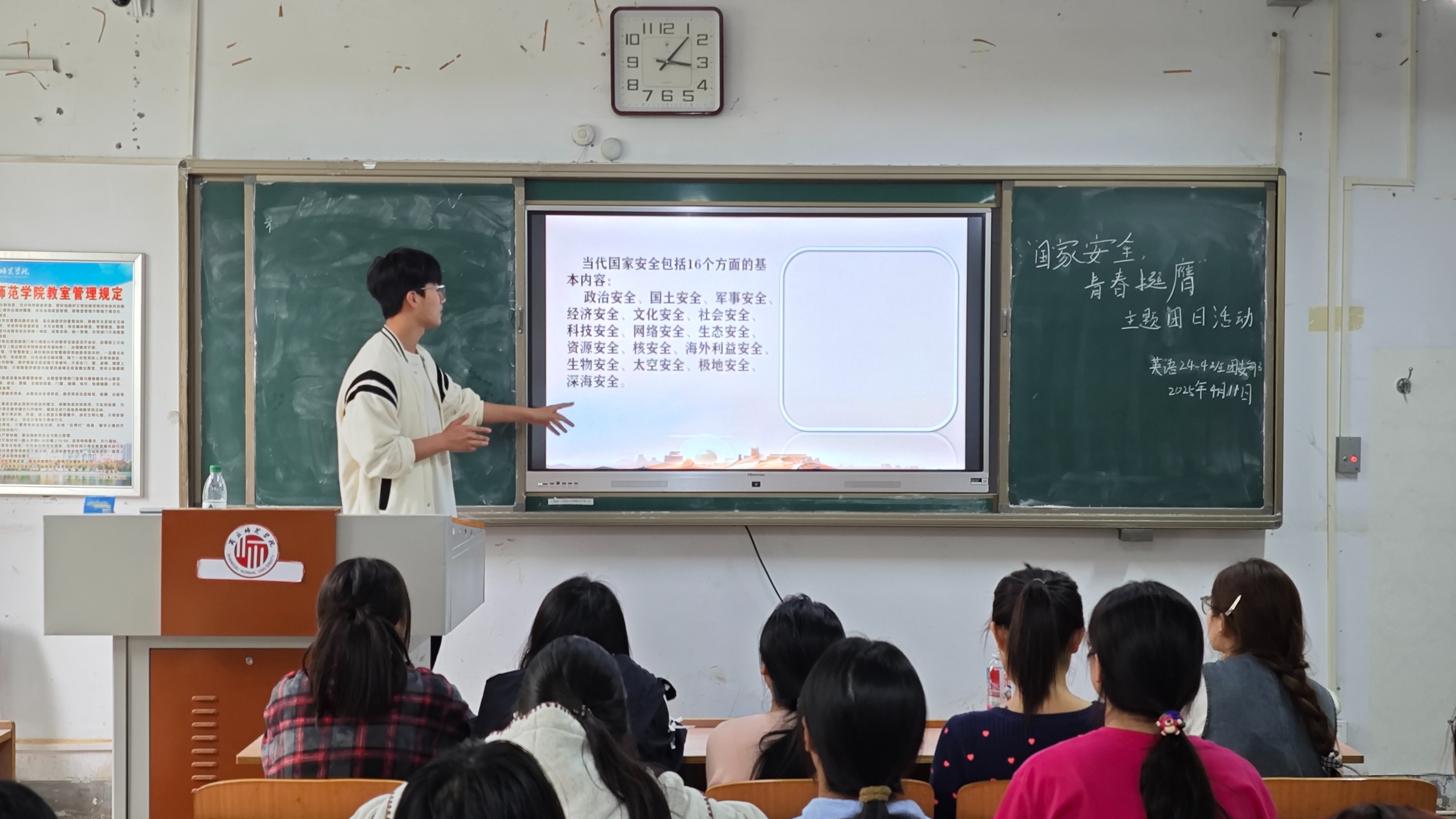 活动期间,各班团支部充分发挥主观能动性,紧密结合外语专业特色,开展了形式多样、精彩纷呈的学习交流活动。在知识竞赛环节,竞赛题目经过精心设计,巧妙地融合了国家安全相关的法律法规、古今中外的历史事件以及当下备受关注的时事热点。同学们全神贯注,紧盯题目,积极抢答,现场气氛紧张而热烈。在激烈角逐中,大家不仅巩固了国家安全知识,更深刻体会到国家安全与个人生活的紧密联系,认识到国家安全无小事,每一个人都是国家安全的守护者。