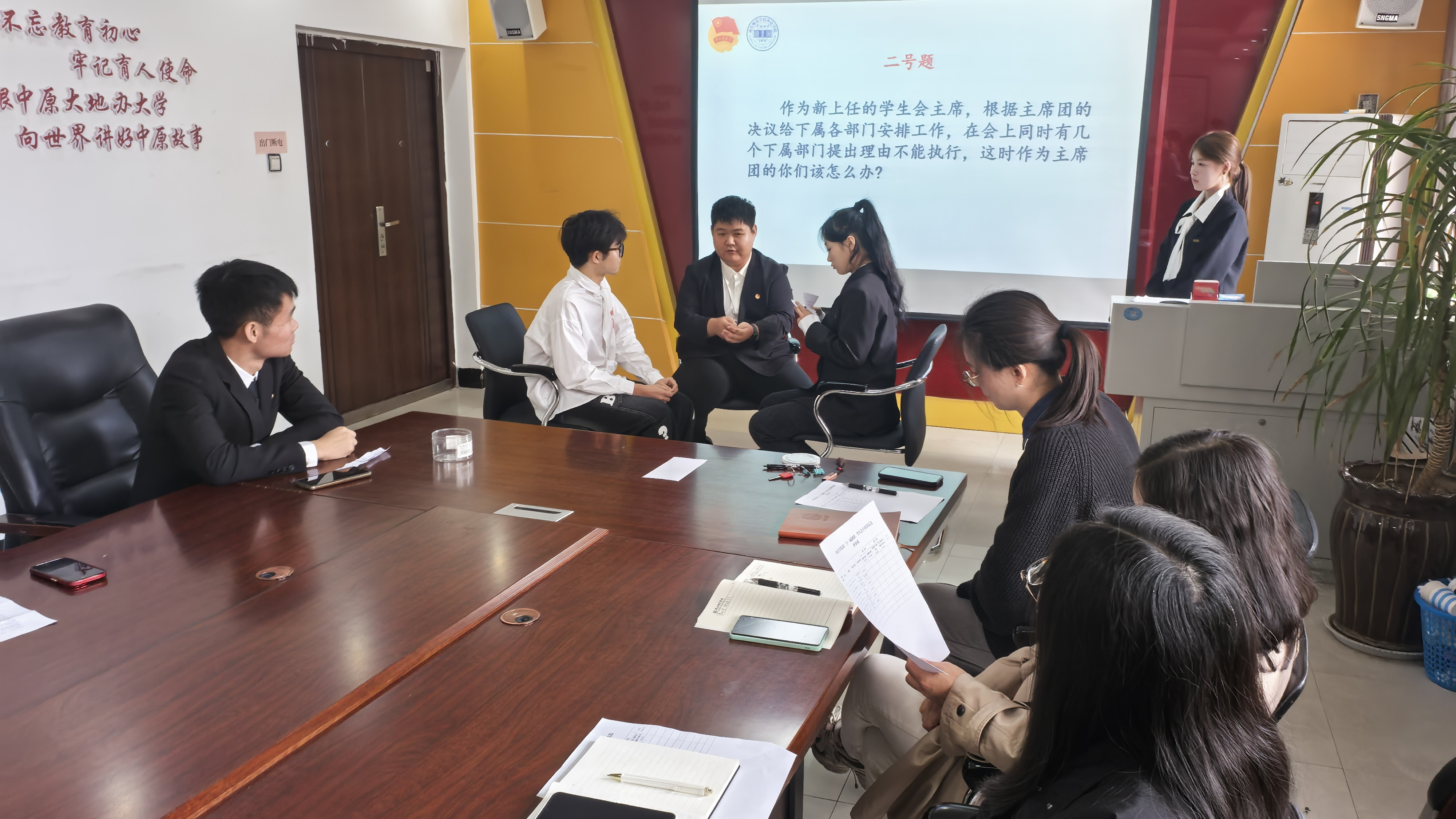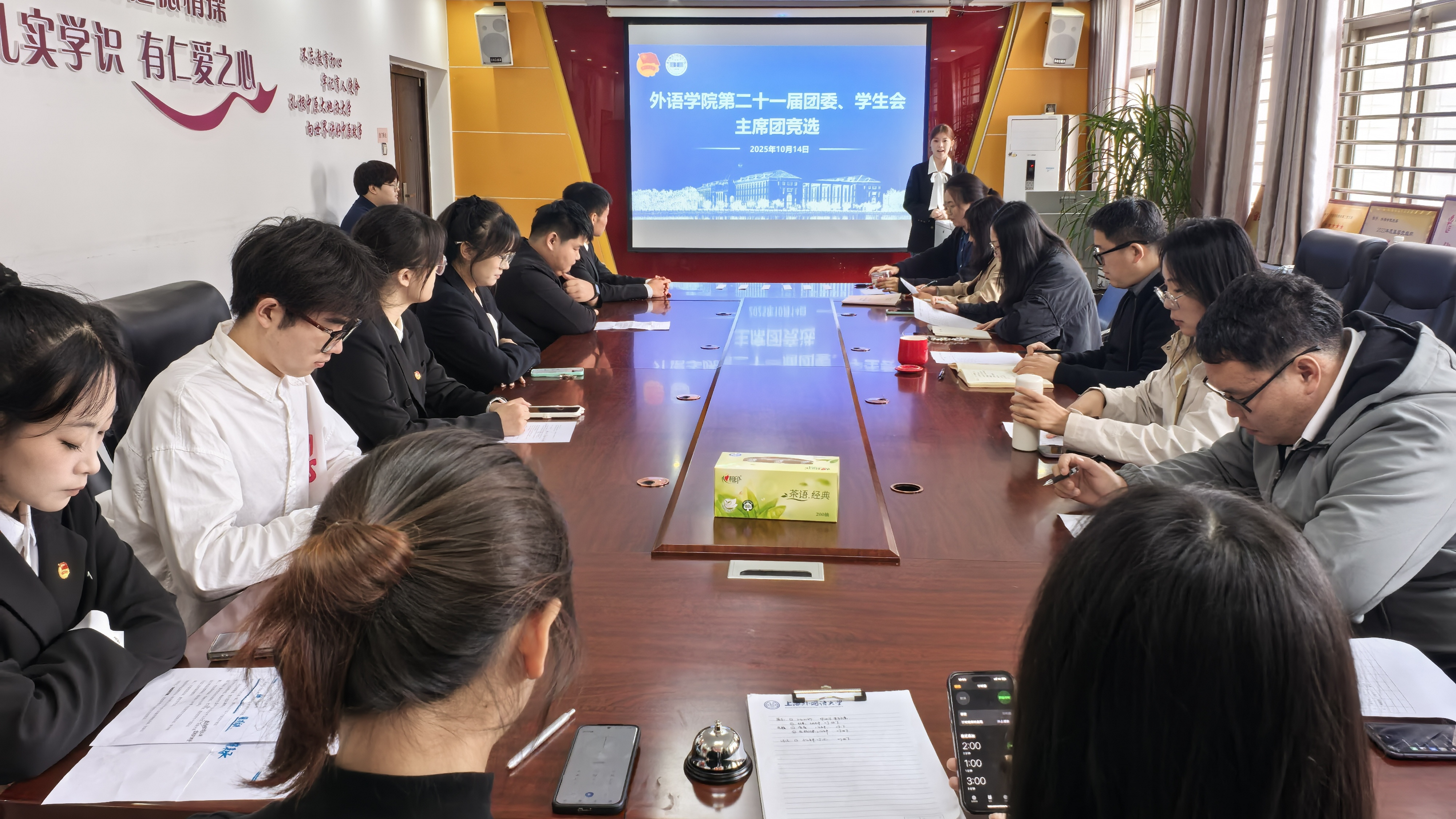 此次竞选分为个人展示与无领导小组讨论两个环节。在个人展示过程中,各位候选人依次演讲,各有风格,有的立足自身工作经验,清晰阐释对团学组织职能的理解;有的围绕着岗位核心展开,展现出在组织协调、服务统筹等方面的能力优势;还有的从内部建设、服务优化、活动创新等维度,提出贴合工作实际的履职规划,传递出以行动践行责任、助力团学工作提质的热忱与决心。在无领导小组讨论环节,候选人们根据抽选题目,结合实际进行交流规划,既体现了他们的思考深度,也展现了相互间的协作意识。