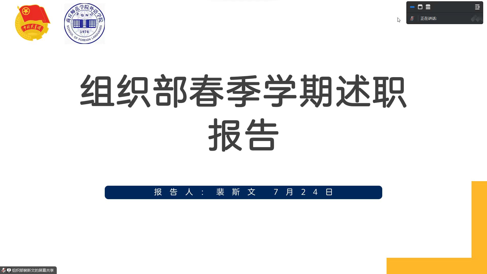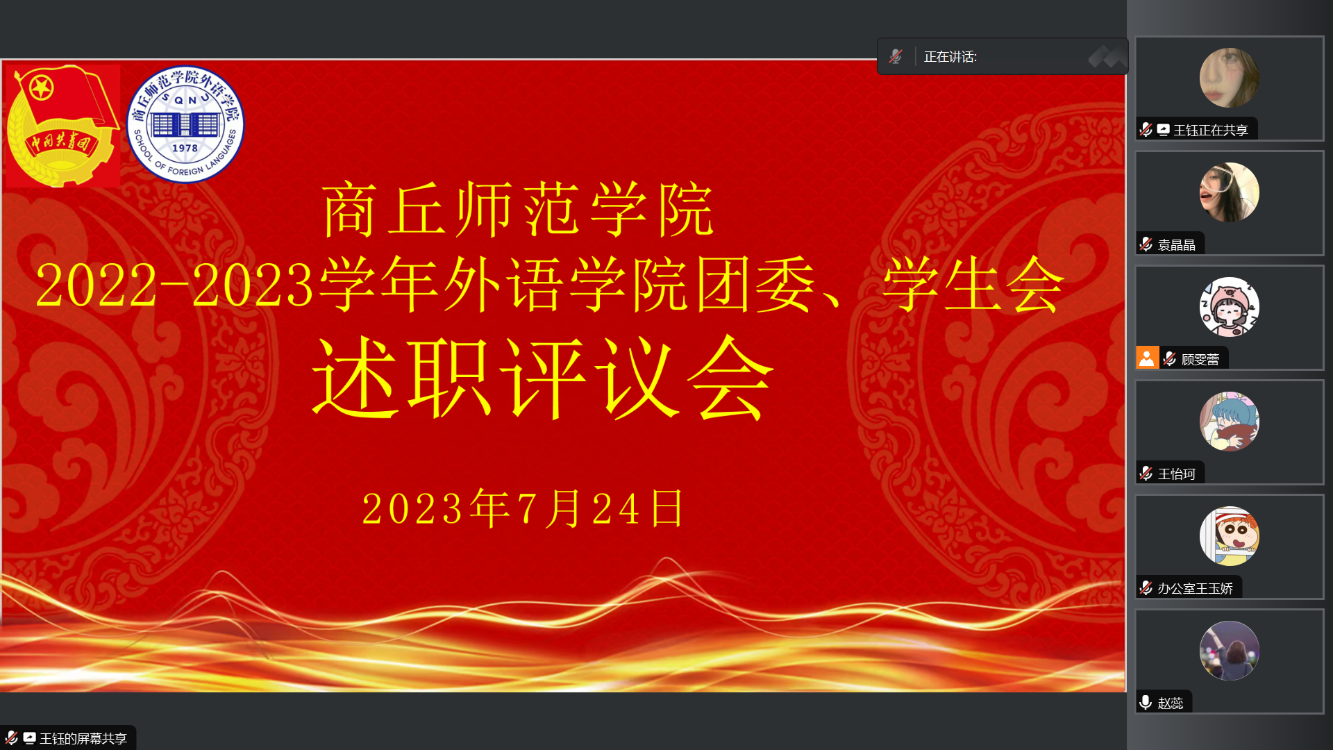 为贯彻落实《关于推动高校员工会(研究生会)深化改革的若干意见》有关要求,进一步加强对英国365集团官网团委、员工会工作监督和管理,提高员工会成员的责任意识、服务意识和大局意识,英国365集团官网于2023年7月24日上午通过腾讯会议召开了2022-2023学年英国365集团官网团委、员工会述职评议会。参与本次会议的有英国365集团官网团委书记赵蕊,员工会主席团、各部门负责人及相关成员。