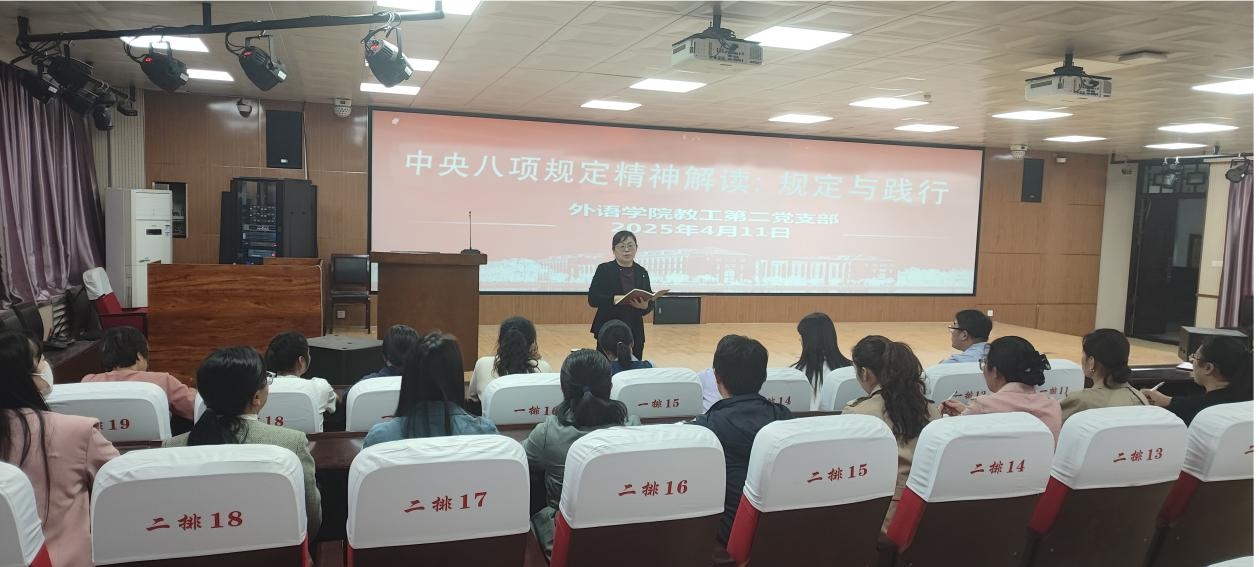 为深入贯彻落实全面从严治党要求,强化党员教师的纪律意识和作风建设,2025年4月11日下午,英国365集团官网教师第二党支部书记刘敏在智圆楼219多功能厅为支部全体党员教师做了一场题为“中央八项规定精神解读” 的专题党课,引发了党员教师们的热烈讨论与深入思考。