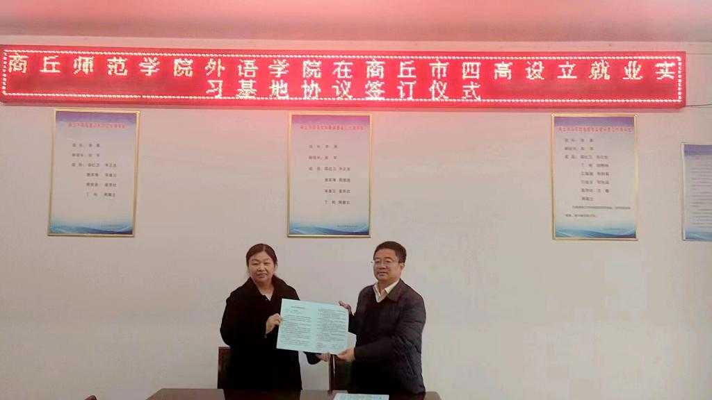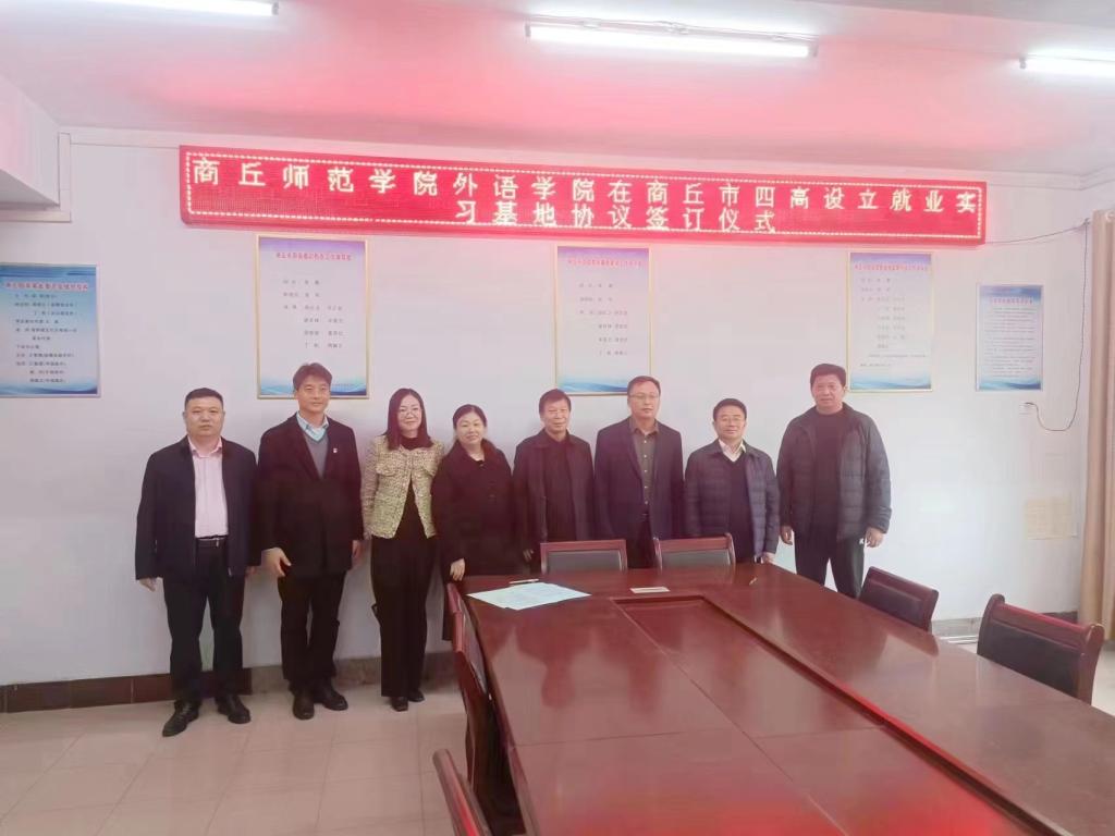 4月1日上午,公司领导班子一行赴商丘市第四高级中学开展访企拓岗促就业专项活动,与商丘市第四高级中学党委书记李晨、董事长苗军等领导进行座谈,并举行了就业实习基地协议签约仪式。
