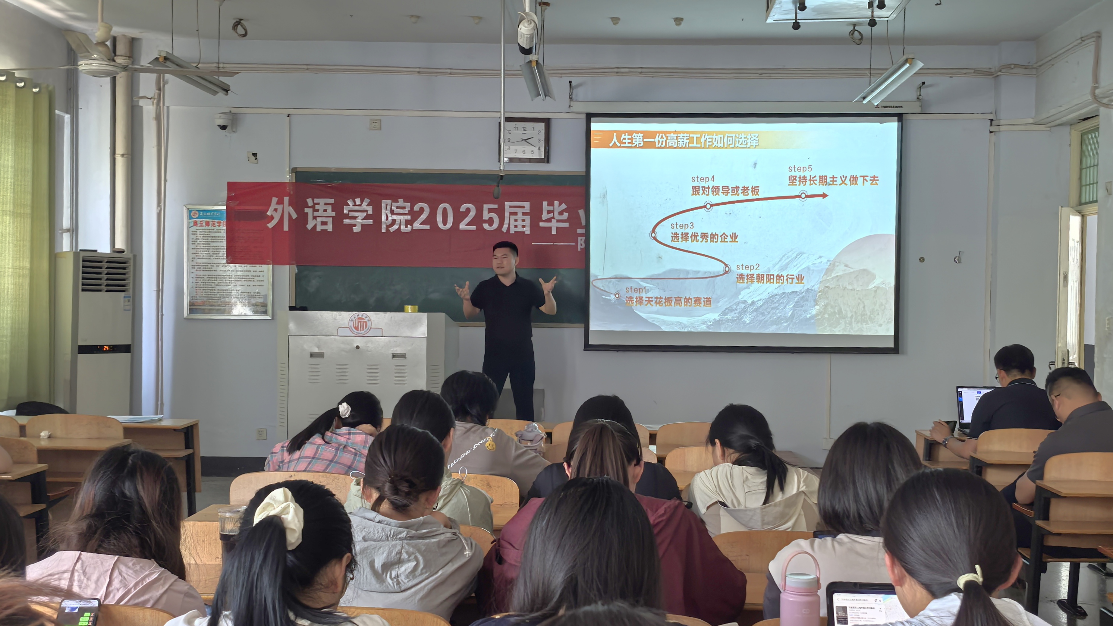 为助力2025届毕业生精准对接优质就业资源,拓宽就业渠道,英国365集团官网于2025年6月4日下午在智圆楼217教室举办2025届毕业生校园专场招聘会——阿里巴巴国际站(南粤大区)专场招聘,此次招聘会由2025届毕业班辅导员王贺乾主持,阿里巴巴国际站(南粤大区)中诚汇才人力资源有限公司总经理张乃军主讲,2025届毕业生和2022级员工代表参加。