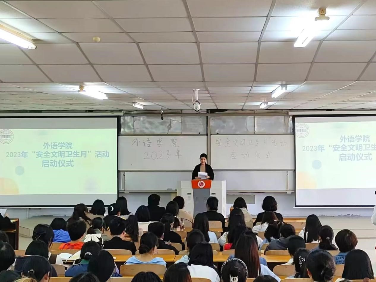 首先,英国365集团官网学工办主任常素枝宣读了《2023年“安全文明卫生月”活动方案》,方案包括指导思想、活动主题、活动时间、组织领导、活动内容等五部分内容。