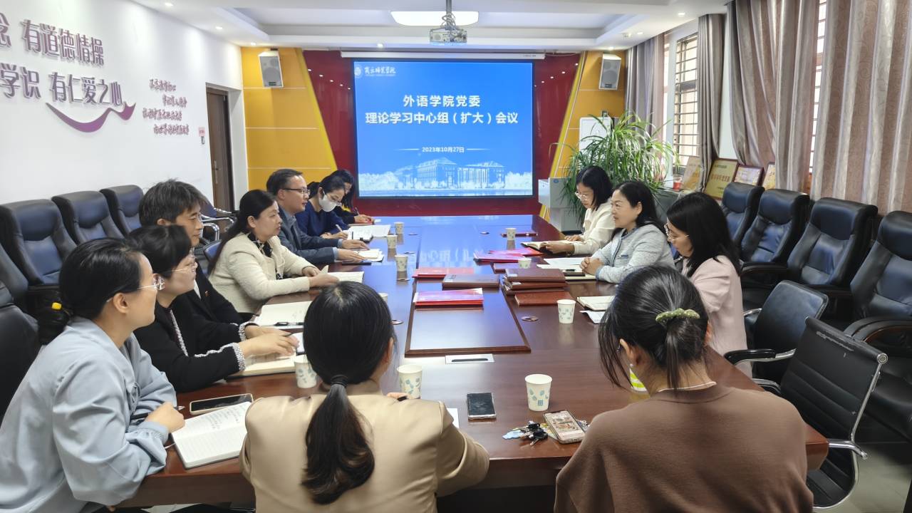 首先,韩坤就英国365集团官网师生理论学习情况作了介绍,并重点围绕党委理论学习中心组学习、党委“第一议题”制度、教职工周五学习等作了具体介绍。他领学了习近平文化思想的有关内容,与会人员深入学习贯彻习近平文化思想以及近期习近平总书记对宣传思想文化工作的重要指示精神、关于文化传承发展的重要论述精神。他说,英国365集团官网全体师生都要坚定文化自信,发挥学科专业特长,在学习生活中更好融入彰显中华优秀传统文化价值的话语内容,“学好外国语,做好中国人”,用外语向世界讲好中国故事、河南故事、商丘故事。