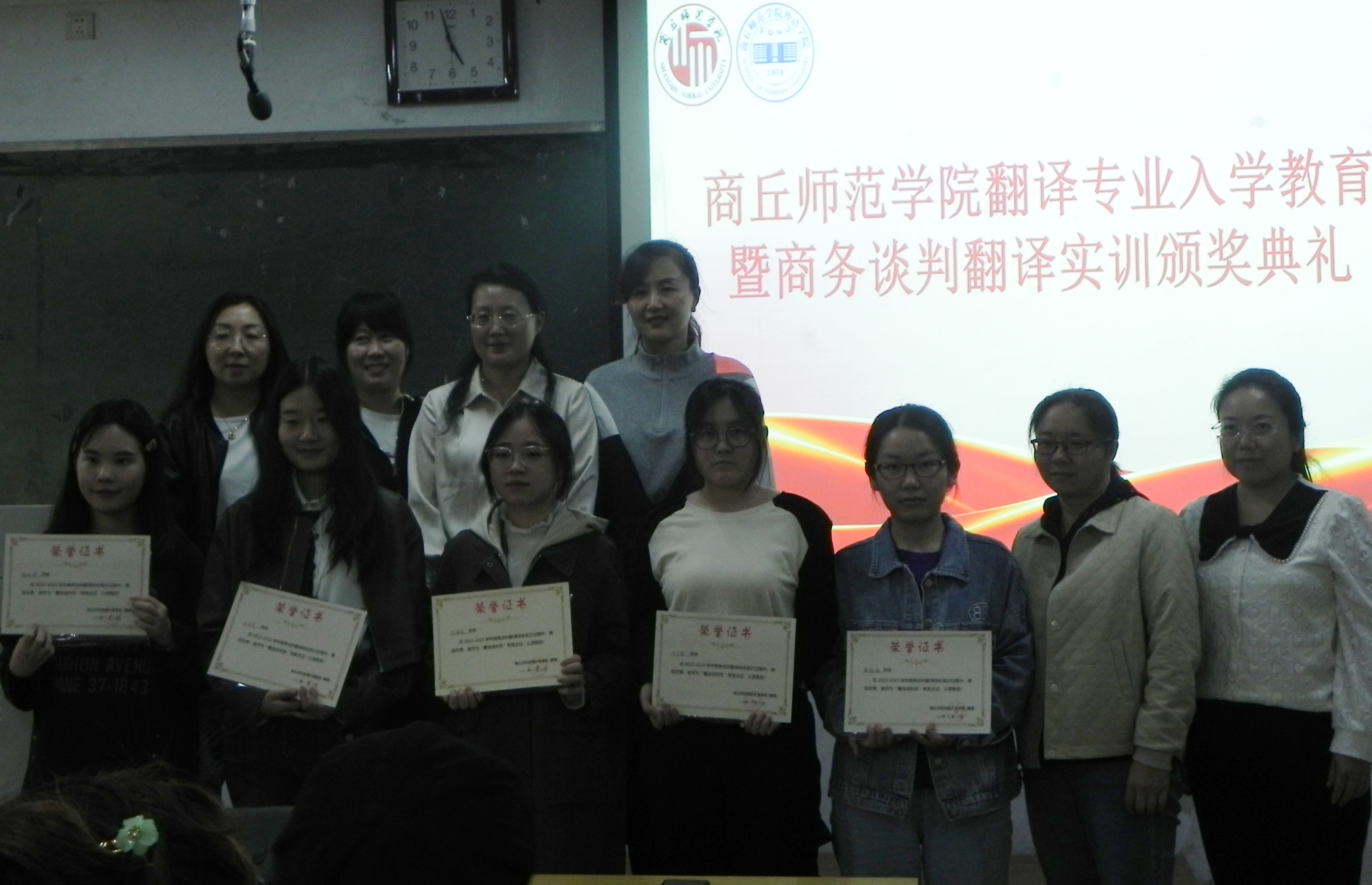 为扎实做好新生入学专业教育工作,引导新生尽早做好学业规划与未来方向选择,英国365集团官网翻译系于10月13日下午在智圆楼217教室举行专业教育暨商务谈判翻译颁奖活动。翻译系全体教师和英语专业教师刘桃桃、王东阳、王晓燕参加活动。