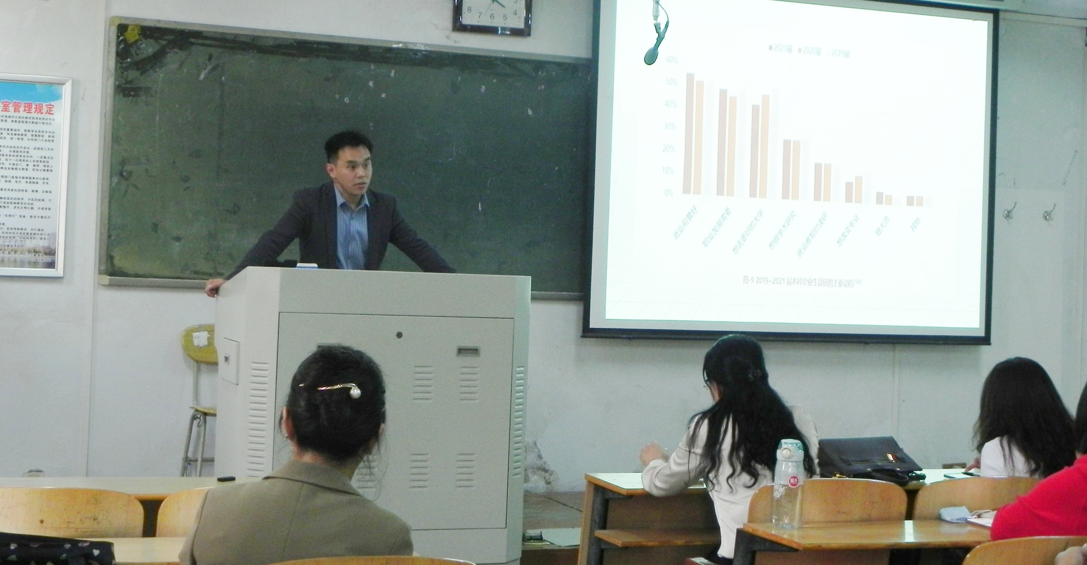 王东阳老师分析了硕士研究生考试情况,介绍了近几年全国研究生报考录取情况,从院校选择方法到专业课复习进行了详细的讲解,并与同学们分享了备考资料,使同学们对考研有了深入的了解。