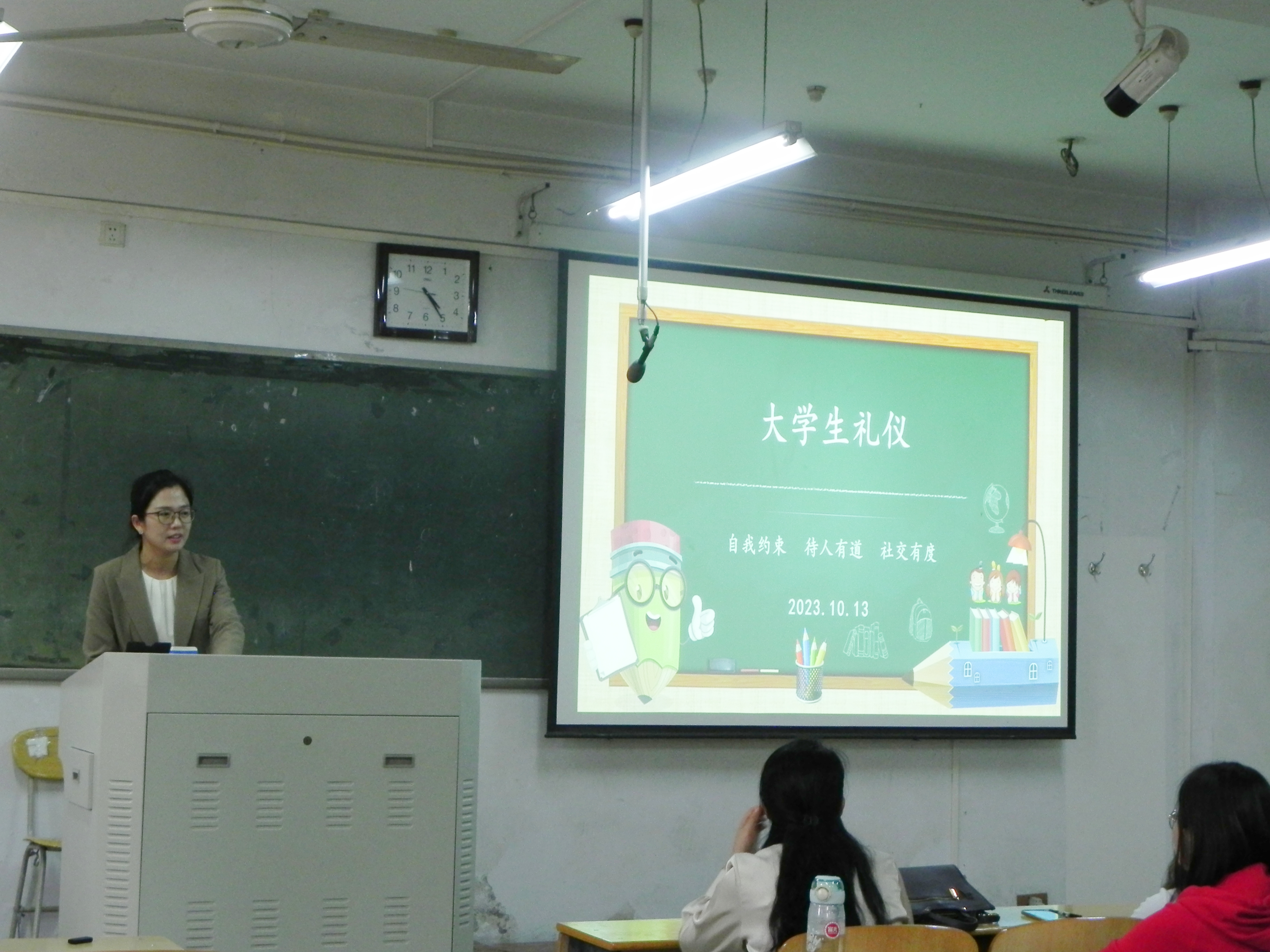刘桃桃老师进行了老员工礼仪教育,提出三点建议:自我约束、待人有道、社交有度,希望同学们通过对现代社交礼仪的学习,树立良好的形象、建立良好的人际关系,开启美好的老员工涯。