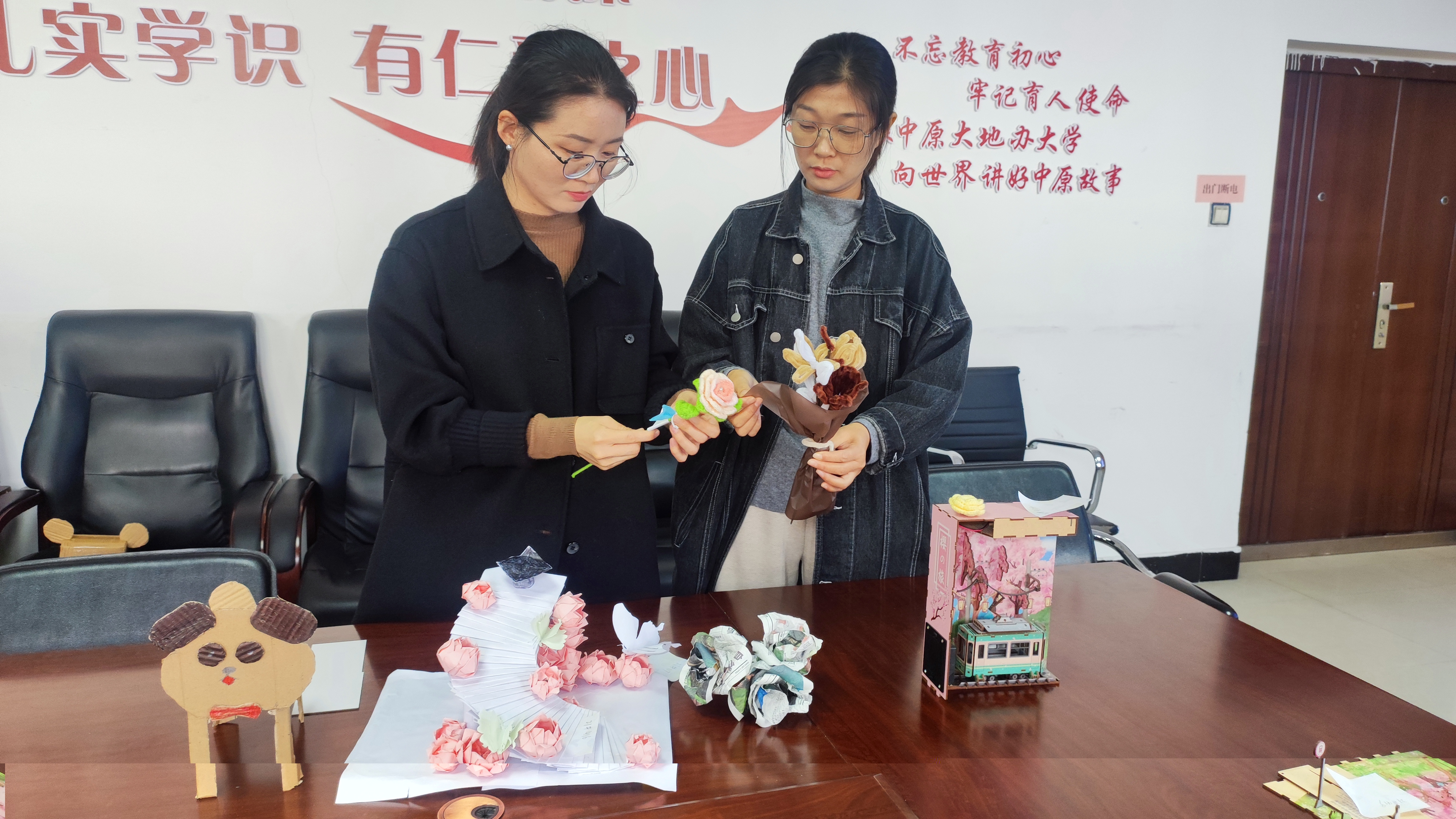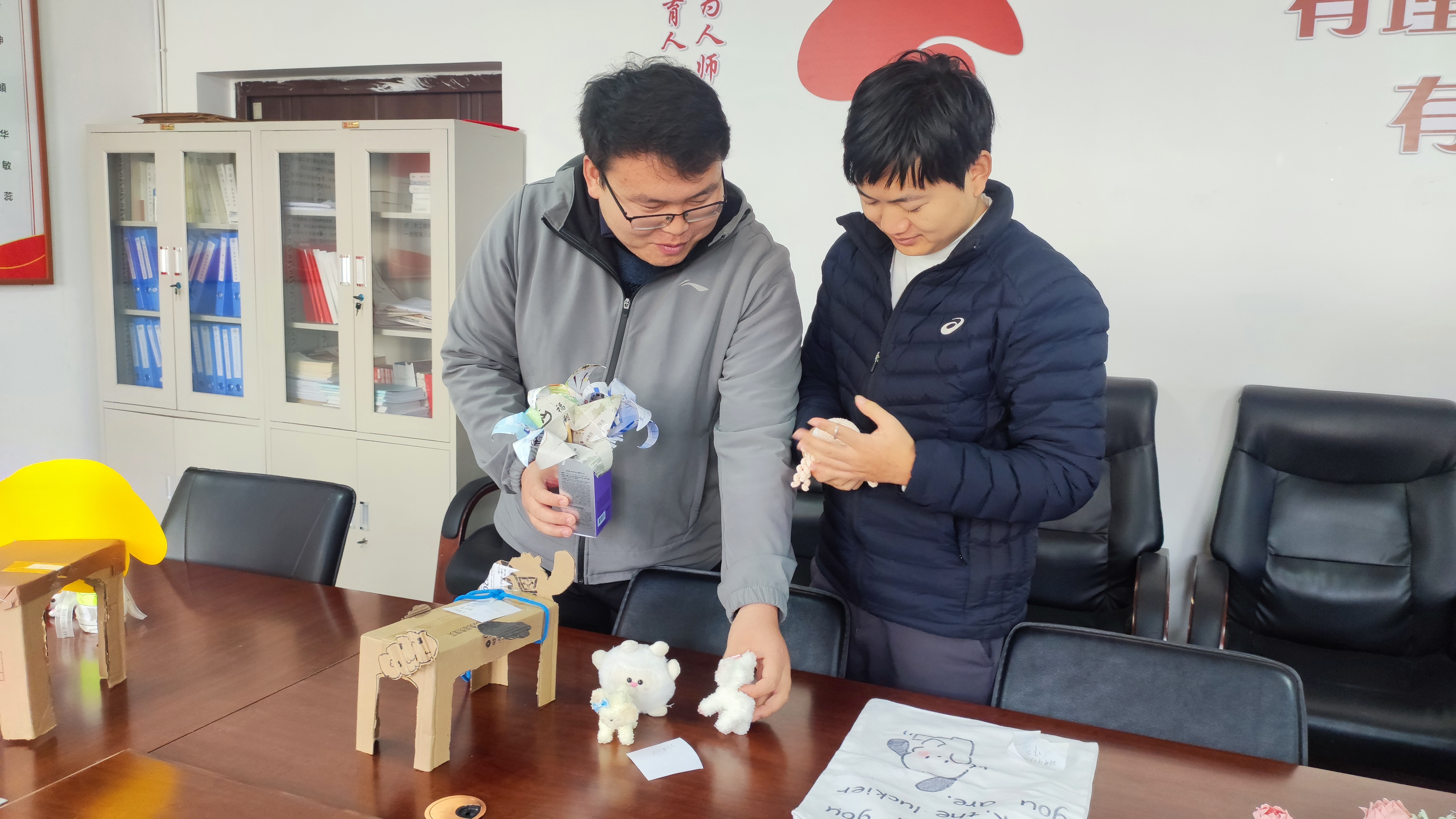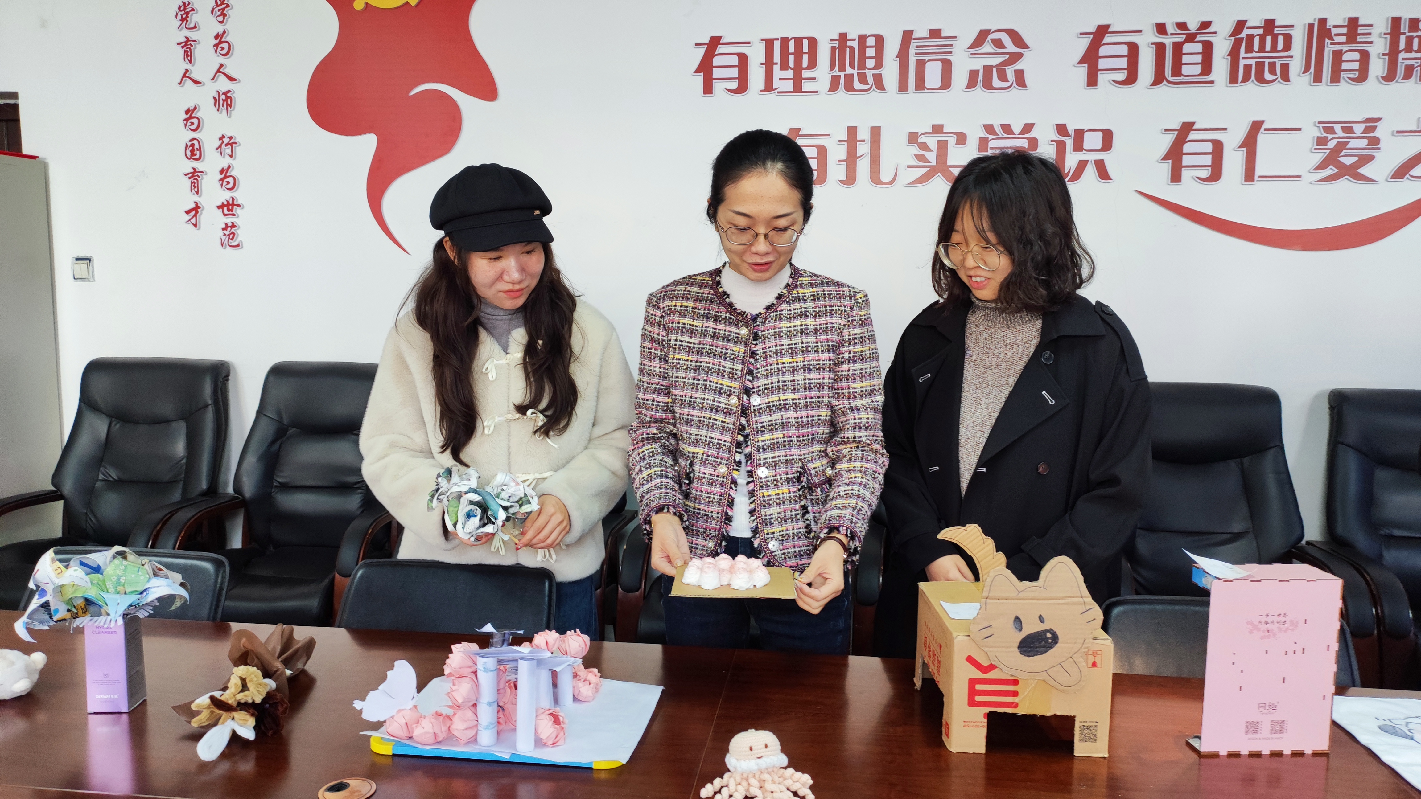 活动前期进行广泛宣传动员,同学们将宿舍整理出来的环保物料进行创意制作,通过赋予想象力和创造力的表现方式,将杂物变废为宝,制作出彰显生活情怀的一件件独特作品,并在创作过程中充分感受到手工制作的魅力和实践创造带来的幸福感。各式各样充满温情又精美、环保又实用的手工作品也呈现出同学们不同的审美风格和丰富的内心世界,经过前期评选,最终有26件作品进入终评阶段。11月8日上午,由公司党委副书记王頔和各年级辅导员组成大赛评委团,经过现场评选、打分,最终评选出一等奖作品2件,二等奖作品5件,三等奖作品9件以及优秀奖作品若干件。