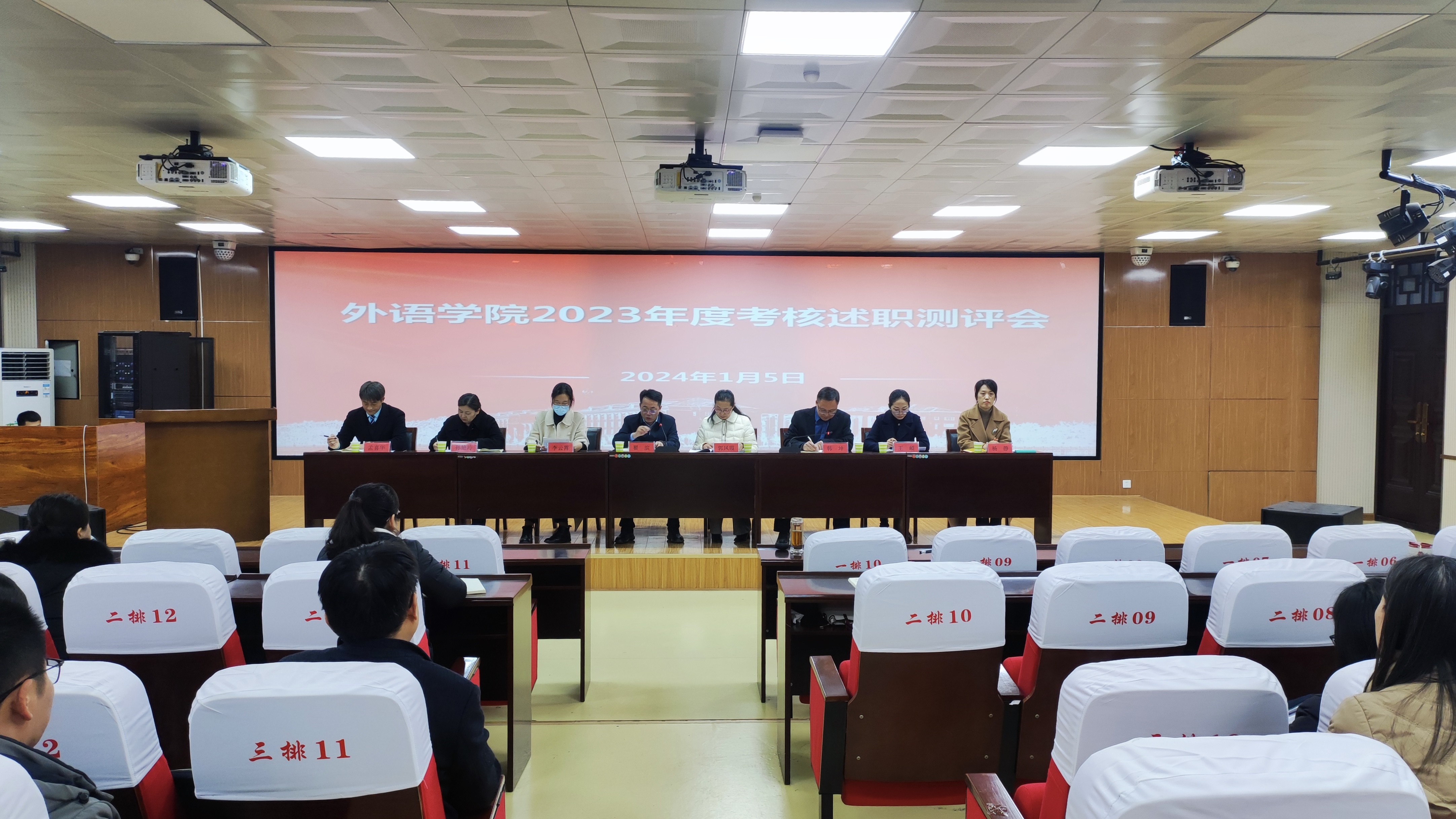 2024年1月5日,公司在智圆楼219多功能厅召开了2023年度考核述职测评会议。集团第八考核组组长、副董事长翟滨,考核组成员、校纪委第一纪检监察室主任郭凤霞、公司党委宣传部理论学习科科长李云霄出席会议。外语公司领导班子成员和全体教职工参加会议,会议由党委书记韩坤主持。