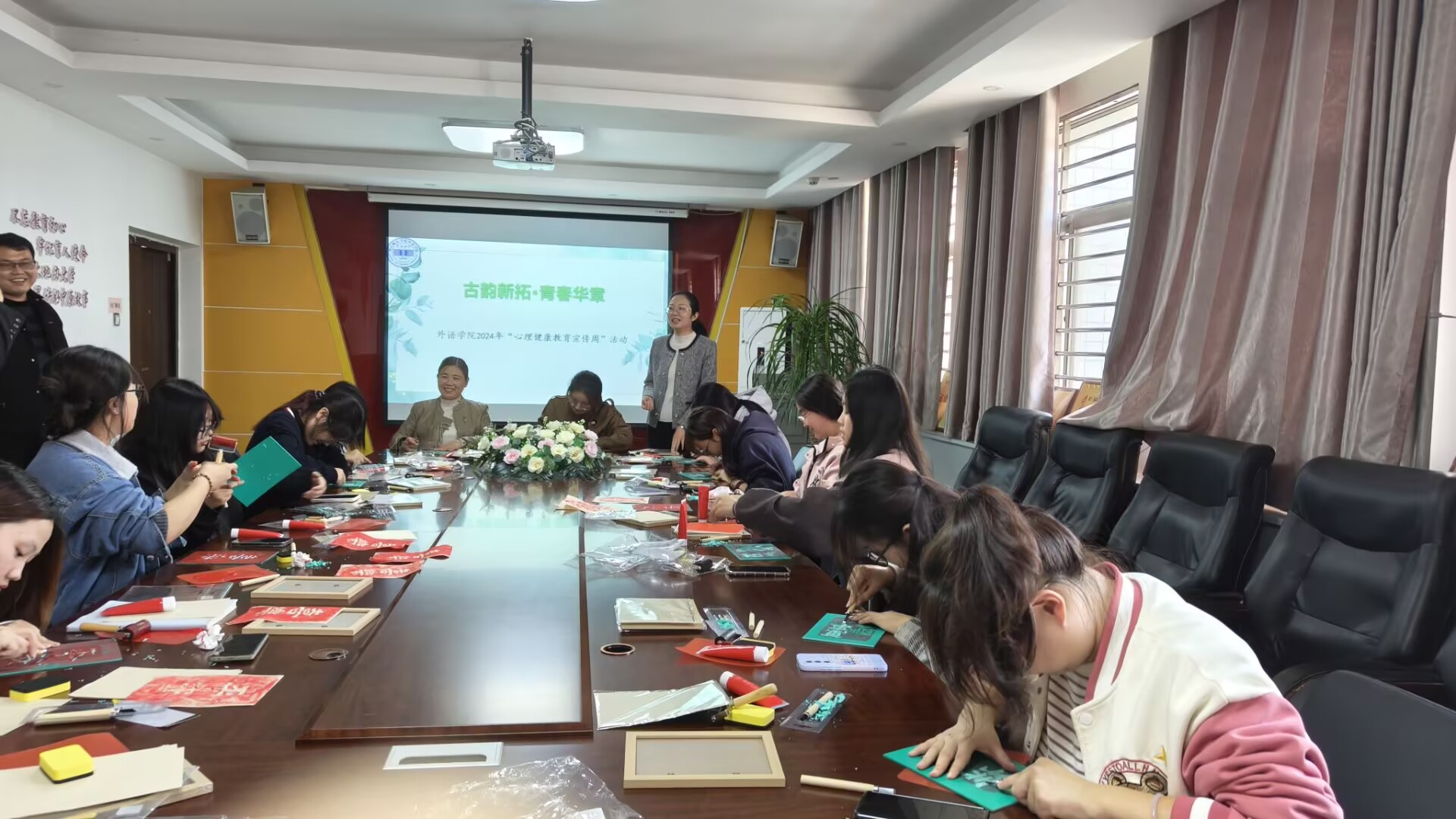 为帮助老员工有效缓解学业与生活压力,感受中华优秀传统文化的魅力,提升情绪管理能力和心理健康水平,促进身心健康全面发展,10月23日下午,公司在应天楼214室举办“古韵新拓·青春华章”2024年“心理健康教育宣传周”活动。公司党委副书记王頔、学工办主任常素枝、心理辅导站站长郭继鹏、辅导员孙颖和各年级员工代表参加,活动由郭继鹏主持。