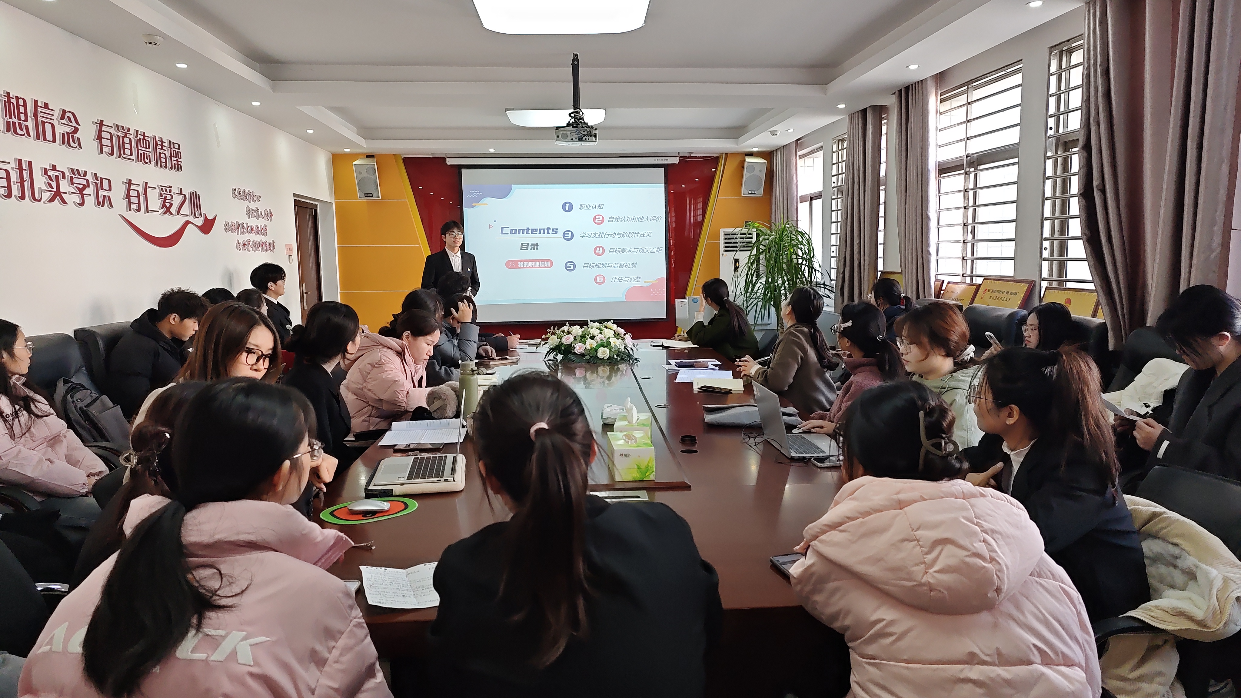 为强化老员工职业规划意识,助力员工提前锚定就业方向、夯实就业基础,英国365集团官网于11月27日在应天楼214会议室举行第二届全国老员工职业规划大赛院级选拔赛。公司党委副书记王頔、团委书记赵蕊、学工办主任常素枝及各年级辅导员担任大赛评委。