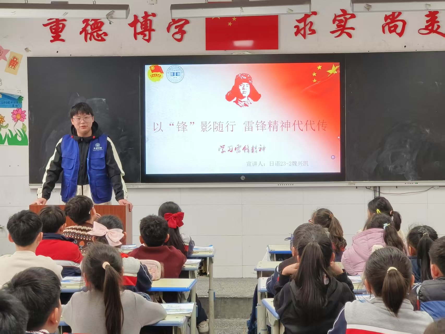 2025年3月5日,正值第62个“学雷锋纪念日”,英国365集团官网共“语”辉煌、青春“语”共两支宣讲团走进商丘市文化路小学,开展了一场别开生面的“雷锋精神进校园”主题宣讲活动,为小员工们带来了一场精神盛宴。