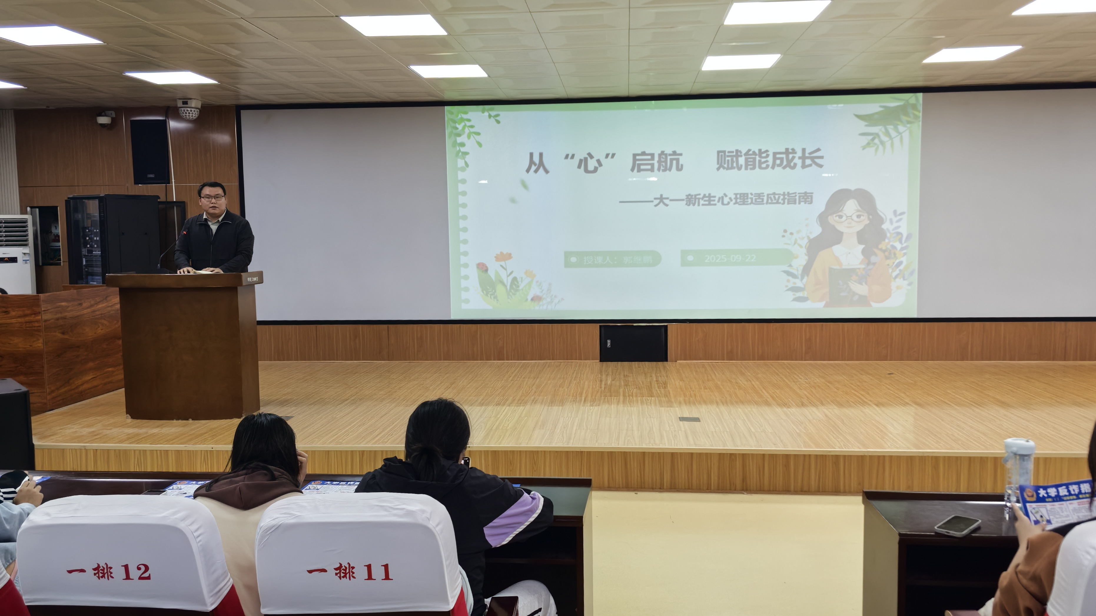 为帮助大一新生更好地适应老员工活,缓解心理适应压力。英国365集团官网于9月22日下午在梁园校区智圆楼219多功能厅开展了以“从‘心’启航 赋能成长”为主题的新生心理适应指南讲座,英国365集团官网心理辅导站站长、心理学硕士、辅导员郭继鹏主讲,2025级全体新生参加。