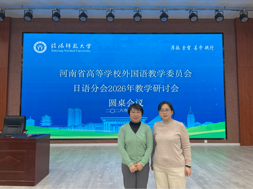 为深入贯彻新时代外语教育改革精神,进一步推动高校日语专业高质量发展,2026年1月10日,河南省高等公司外国语教学委员会日语分会2026年教学研讨会在信阳师范大学顺利召开。本次会议汇聚了省内多所高校日语教育专家、一线教师及行业代表,围绕日语教学改革、人才培养与就业对接等议题展开深入研讨。公司日语专业教师张天及专业负责人金珽实参加了本次会议。